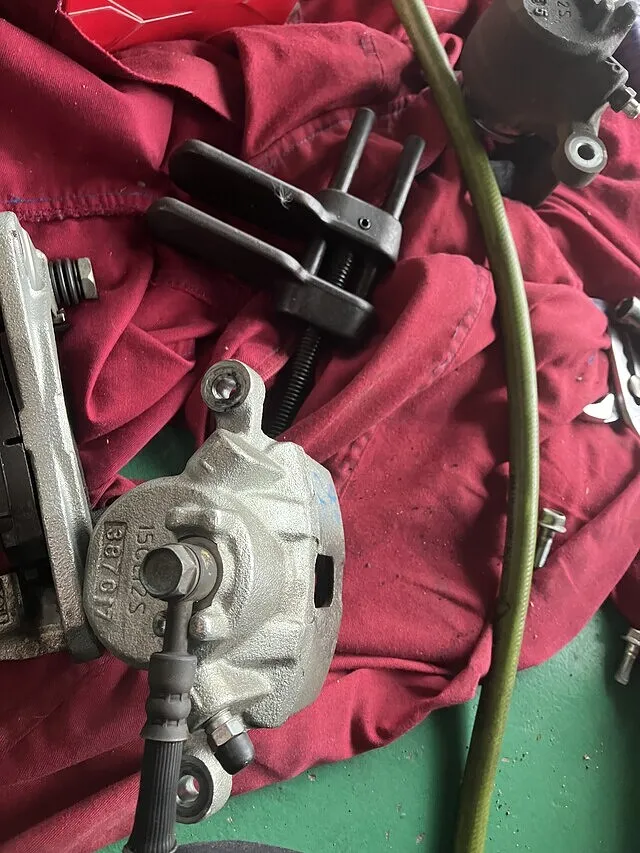 写真は車検整備中にブレーキの固着が見つかったところです。